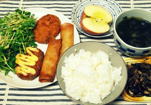 火曜市の惣菜で一揃え。