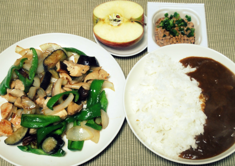 カレーの残滓とズボラ炒め。