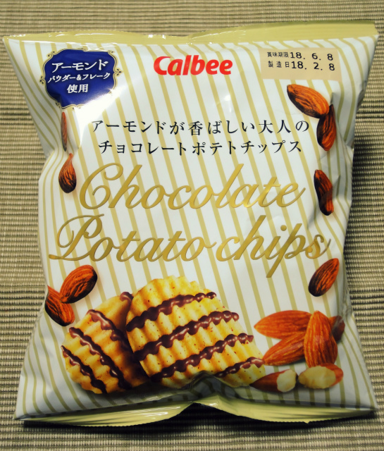 カルビーの新作「アーモンドが香ばしい大人のチョコレートポテトチップス」を食してみた。ファミマ限定。既発の「贅沢ショコラ アーモンド味」と中身は同一で、パッケージだけファミマ仕様に変えただけでは無いのだろうか?だとしたら姑息な感じがする。まぁ、おいしい事はおいしいのだが、贅沢ショコラはスーパーでより安く買えるからなぁ。